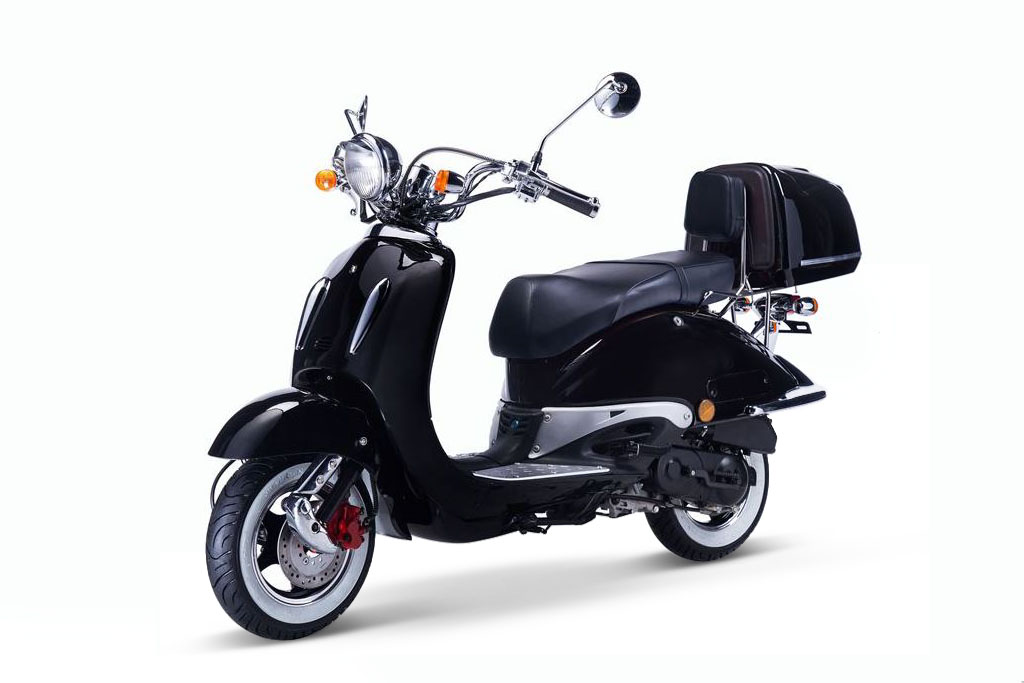 TECHNO CLASSIC 2.0 RETRO ROLLER 50ccm schwarz mit Topcase und schwarzer Sitzbank